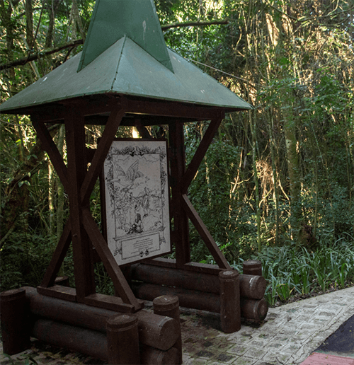A Casa da Bruxa é o grande momento da Trilha João e Maria — o ponto em que a fantasia finalmente ganha forma diante dos olhos das crianças. Depois de seguir os painéis ilustrados e caminhar pela passarela de madeira, os visitantes chegam à construção que parece ter saído diretamente de um conto de fadas. Pequena, charmosa e envolta pela mata nativa, ela marca o clímax da narrativa e transforma o passeio em uma experiência completa.